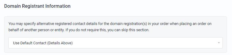 To configure Whois domain registrant information select your default contact or another.